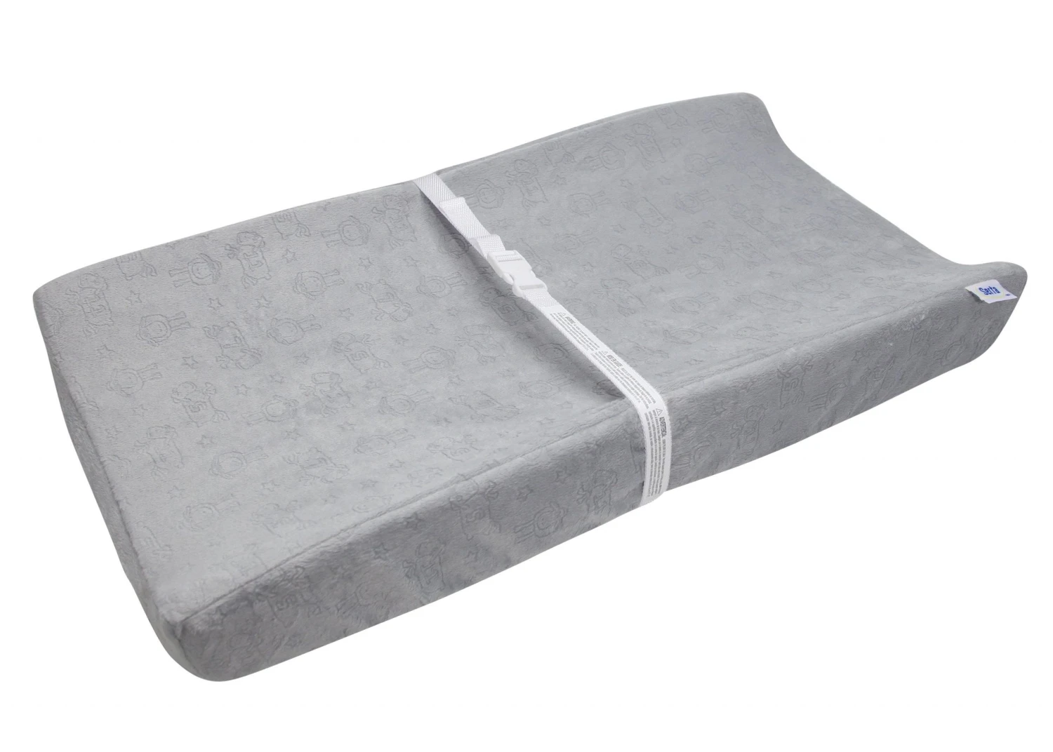 Changing time will now be easier, safer and more comfortable for baby with Serta’s Perfect Sleeper Changing Pad with Plush Cover Set. The safety strap with a quick release buckle provides additional support and security for your little one, easily adhering to most standard changing tables and dressers. The non-skid bottom offers even more stability, ensuring the pad (and baby!) stays securely on the changing area. A machine washable, soft grey plush cover is included, and it features an extremely durable construction that helps block stains and moisture.