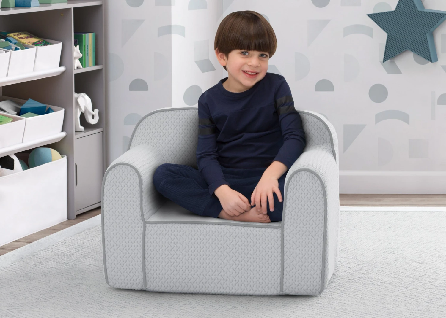 Cozy up to Serta’s iComfort Memory Foam Chair for Kids. A snuggly spot for reading, watching TV or just hanging out, this supremely comfy chair features a memory foam seat for additional comfort and a luxurious quilted slipcover. The slipcover is removable and machine washable for easy cleaning. Perfect for the playroom, living room or your child’s bedroom, this kids’ foam chair goes anywhere they do–the lightweight design with handle on top is easy to move from room to room. Recommended for ages 18 months+.