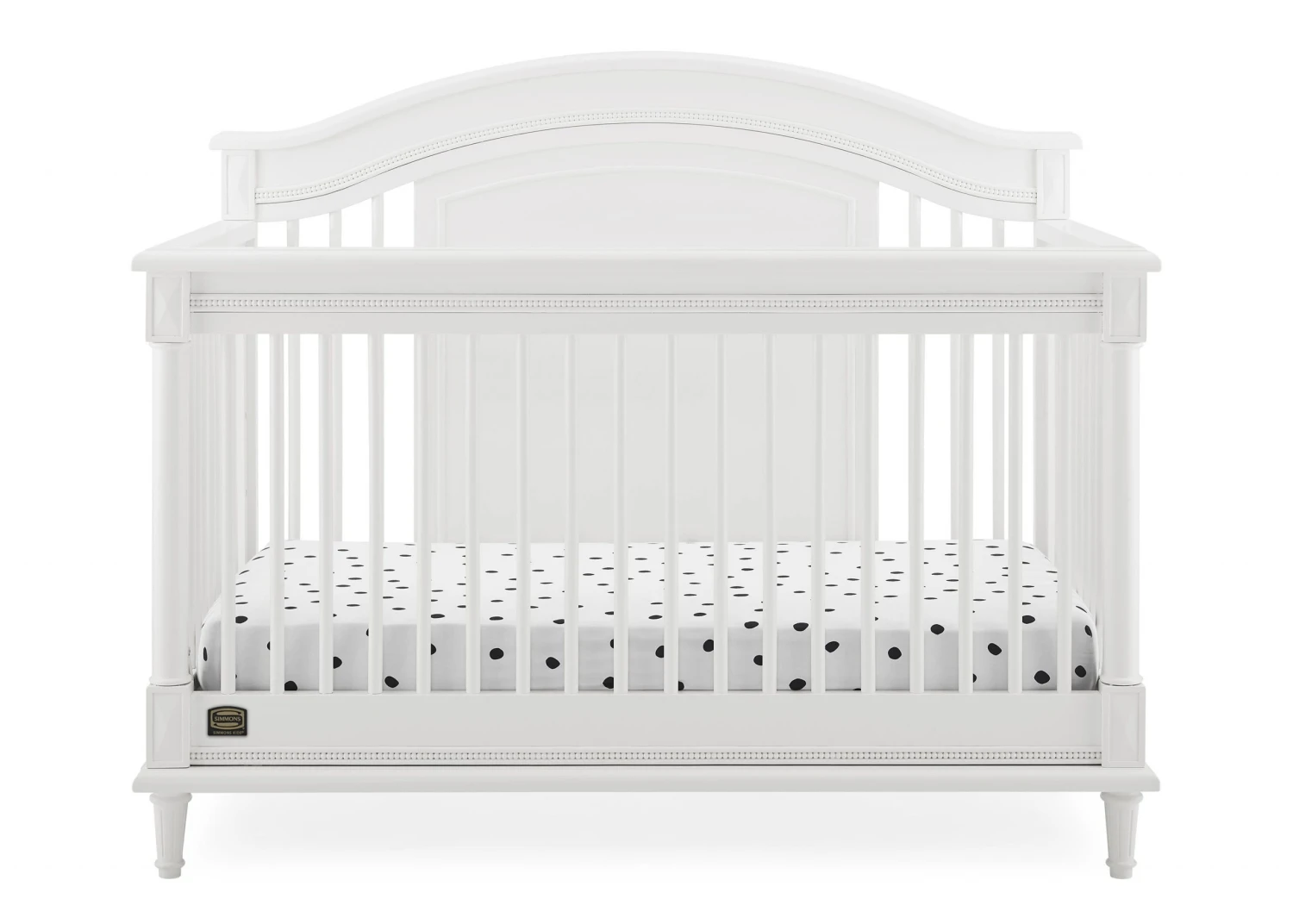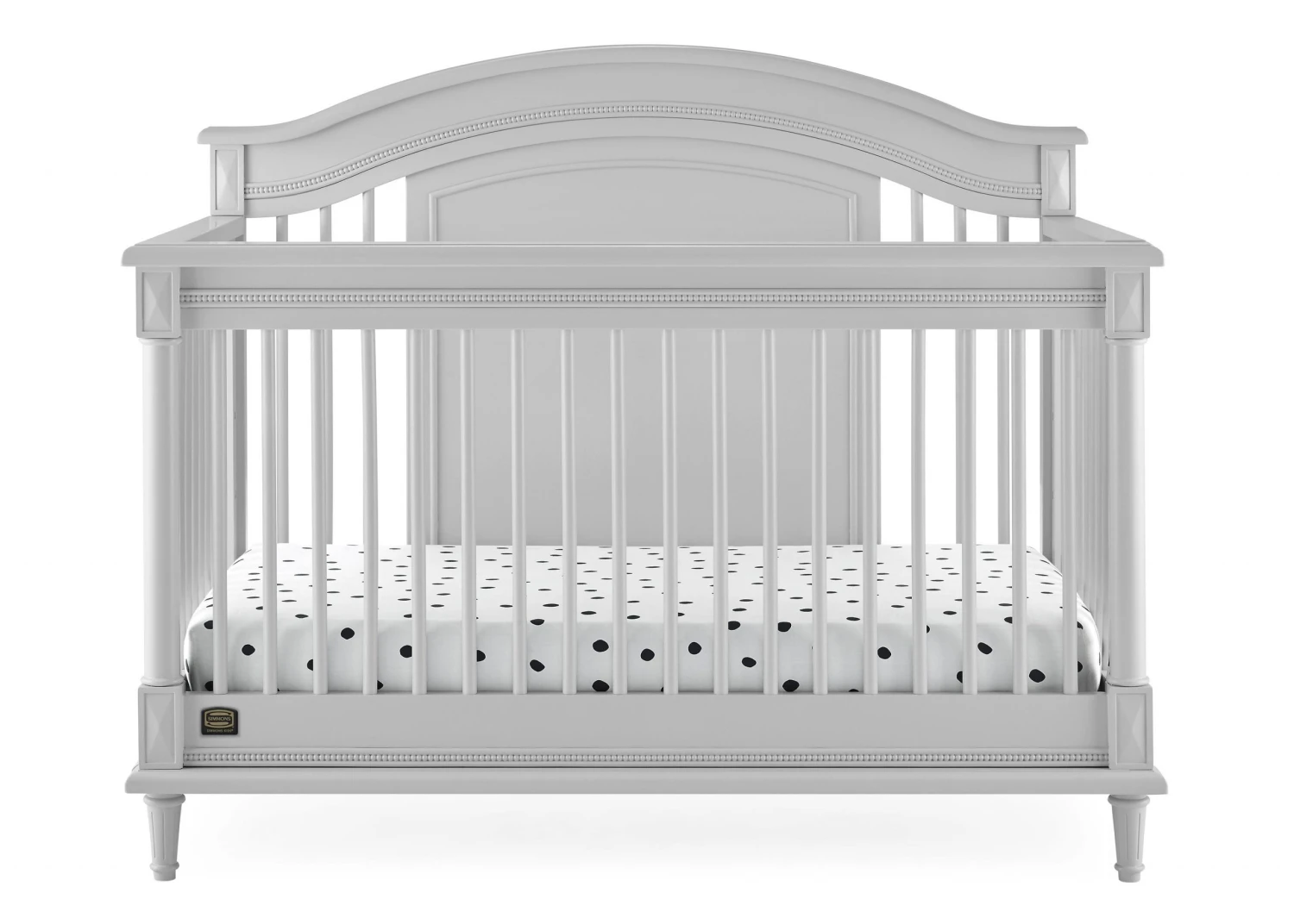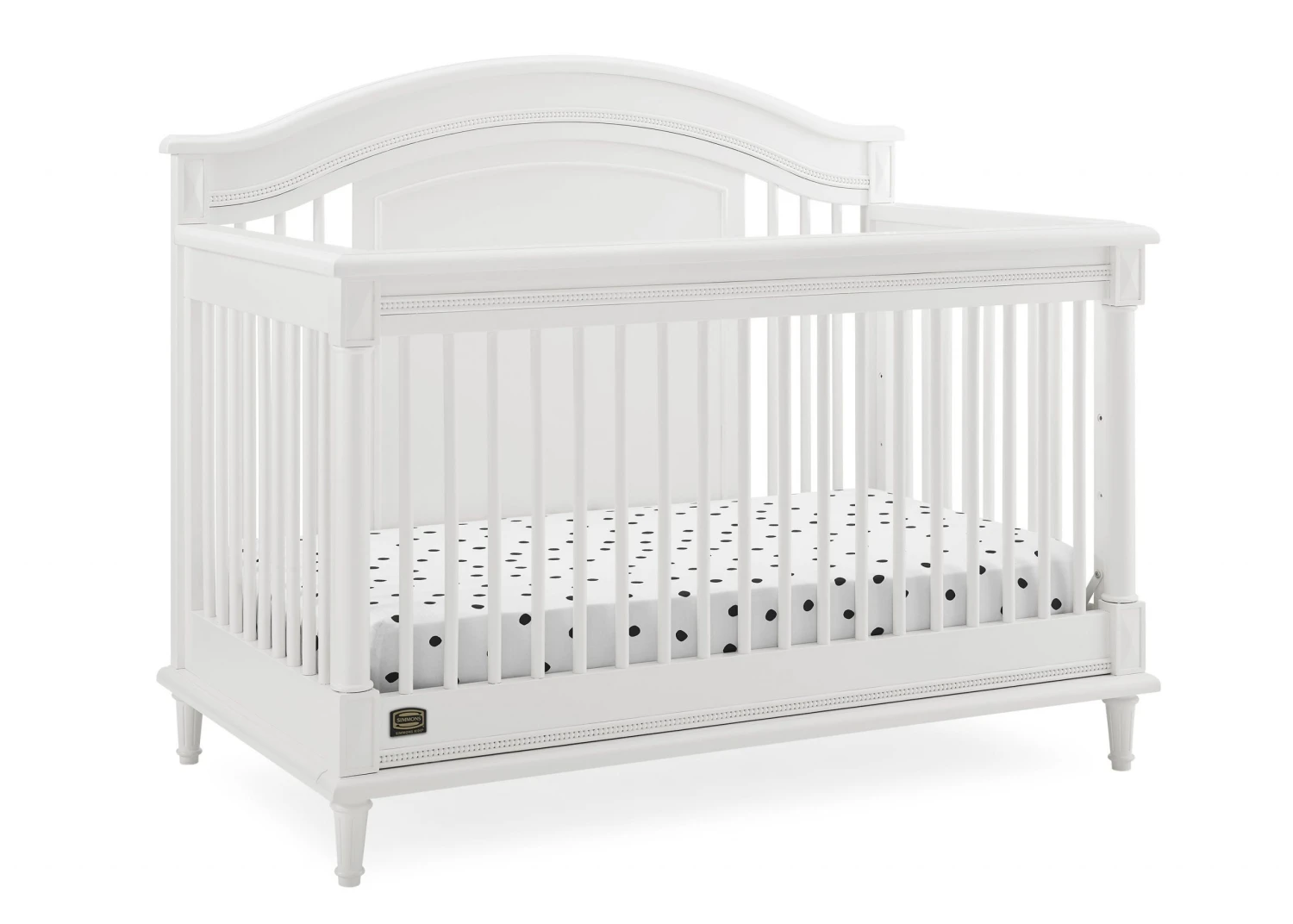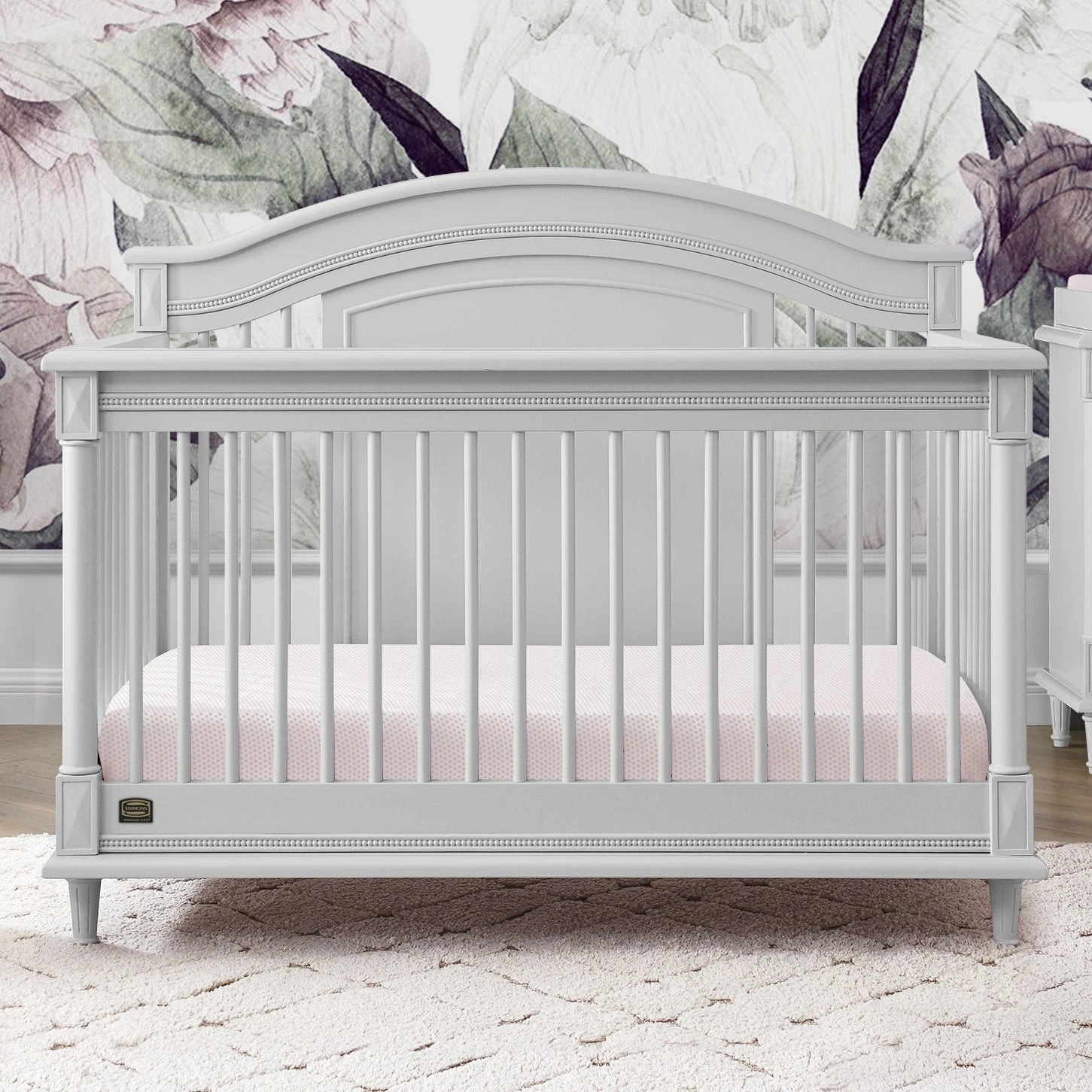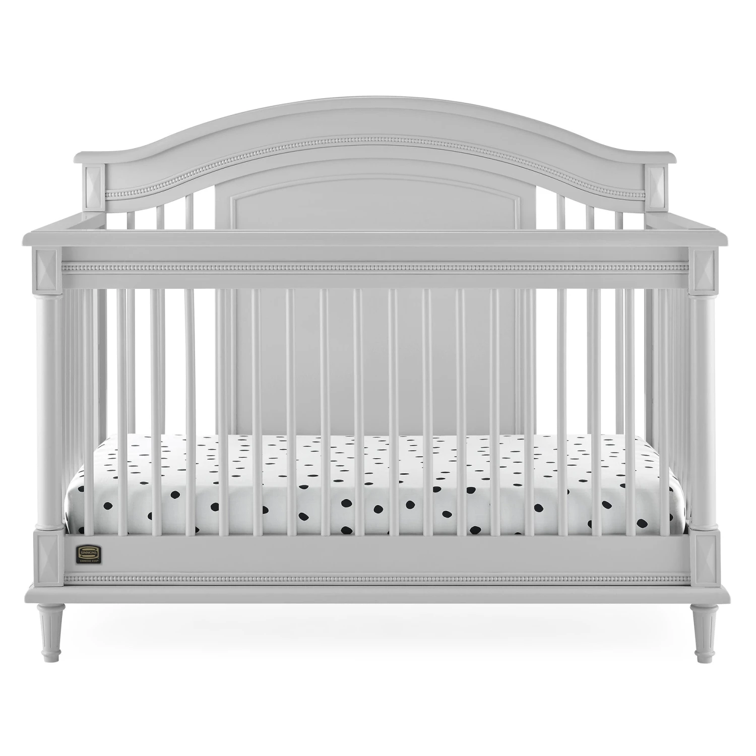Elegant spindles, gorgeous molding and fluted legs with intricate carvings give the Juliette 6-in-1 Convertible Crib by Simmons Kids a sophisticated look. This crib’s grow-with-me design features three adjustable height levels that allow the crib to be lowered as your child grows, plus it converts from a crib, to a toddler bed, sofa, daybed, full size bed with headboard or full size bed with headboard and footboard. The only bed your little one will ever need, this versatile crib will take you from the nursery to high school, and all the years in between. Toddler Guardrail included; Full Size Bed Rails sold separately. To complete your nursery, pair with the coordinating Juliette 6 Drawer Dresser with Changing Top.