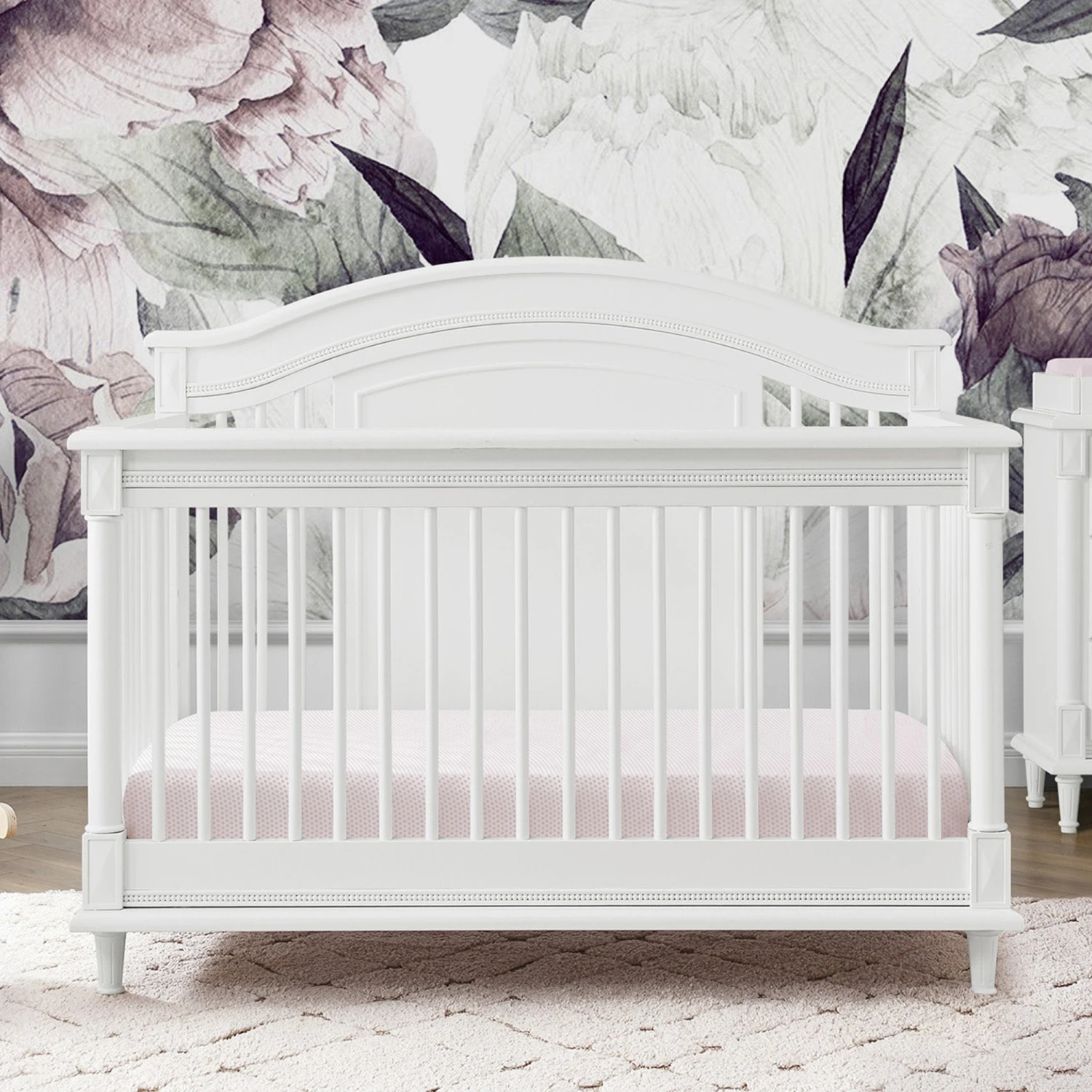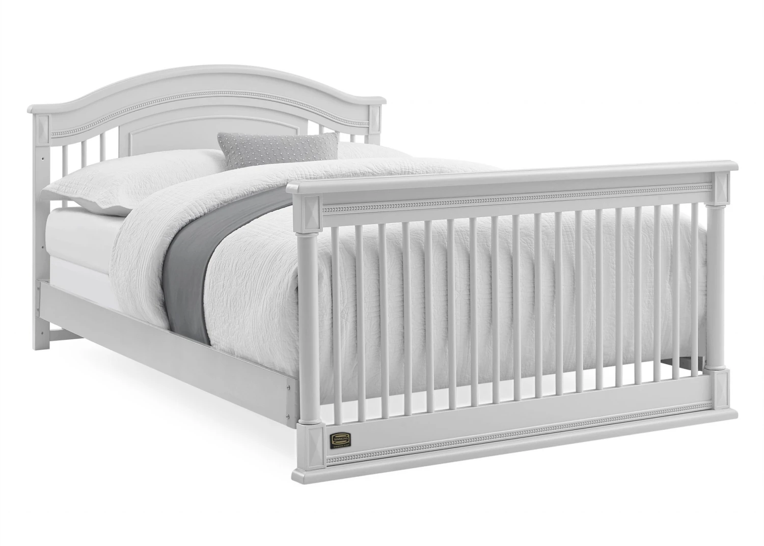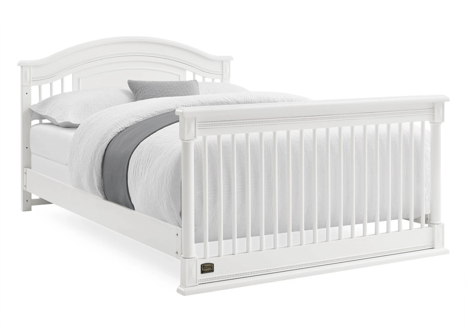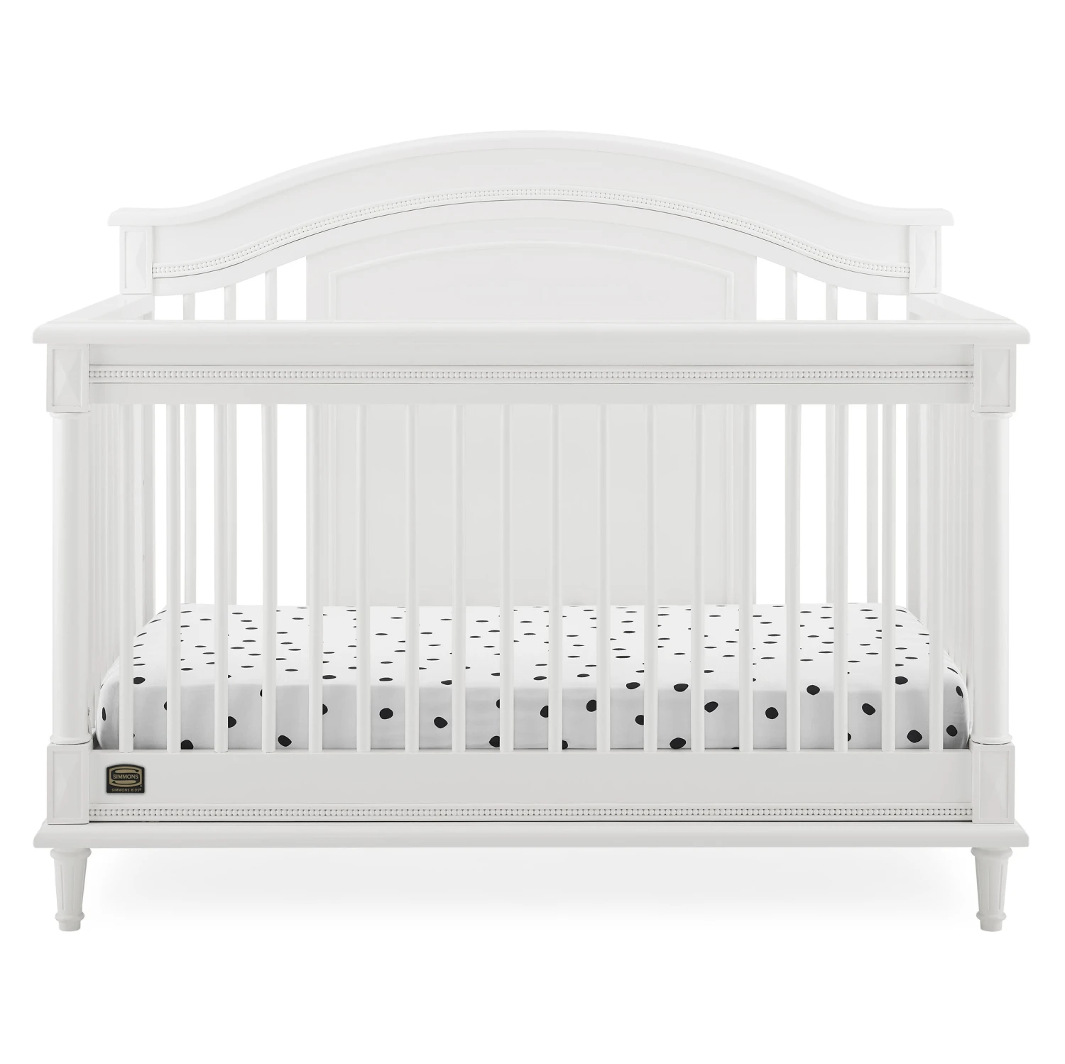 Elegant spindles, gorgeous molding and fluted legs with intricate carvings give the Juliette 6-in-1 Convertible Crib by Simmons Kids a sophisticated look. This crib’s grow-with-me design features three adjustable height levels that allow the crib to be lowered as your child grows, plus it converts from a crib, to a toddler bed, sofa, daybed, full size bed with headboard or full size bed with headboard and footboard. The only bed your little one will ever need, this versatile crib will take you from the nursery to high school, and all the years in between. Toddler Guardrail included; Full Size Bed Rails sold separately. To complete your nursery, pair with the coordinating Juliette 6 Drawer Dresser with Changing Top.